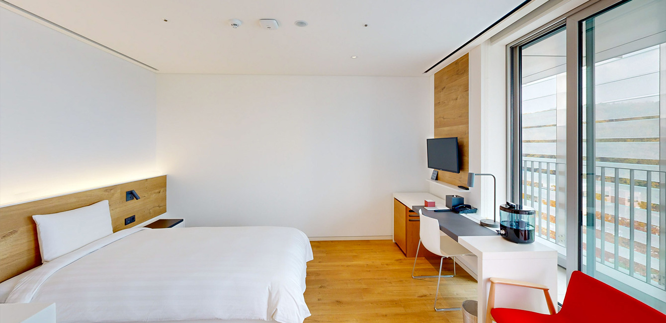 객실 정보 투숙인원 1~2인 (일반적으로 1인1실로 운영되나, 교육 인원에 따라 2인1실로 운영될 수 있음) 침대타입 침대 타입 : 슈퍼싱글 (SS) 객실수 총 176객실 (장애인용 객실 3실, 1인실 4실 포함) 객실면적 약 9.1평 (발코니 제외)